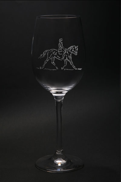Motif "Dressage Stylisé" gravé à la main sur un verre à vin blanc en Cristal Tritan 22.1cl : une transparence éclatante, résistance accrue au lave-vaisselle et aux rayures.
